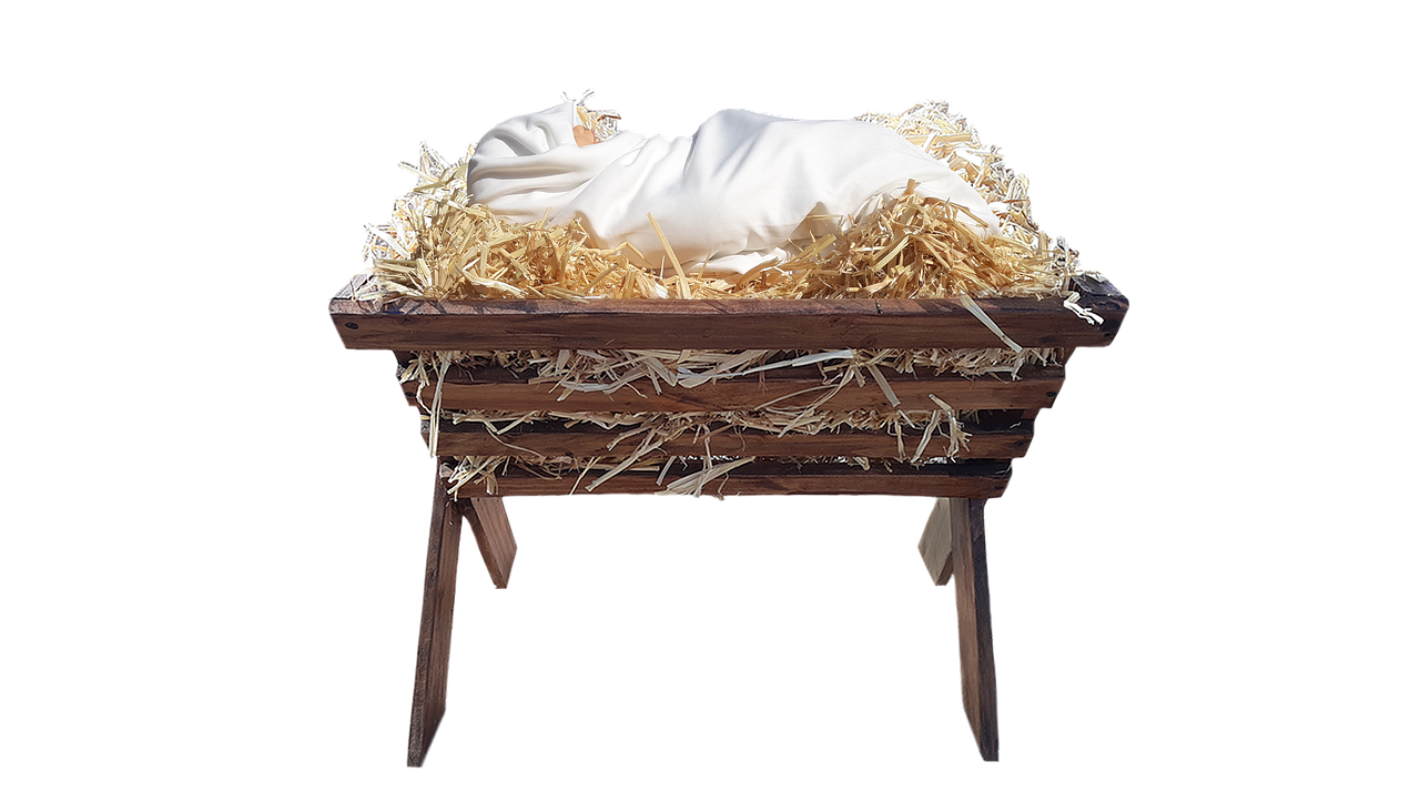 “He was wrapped in swaddling cloths and laid in a manger.”